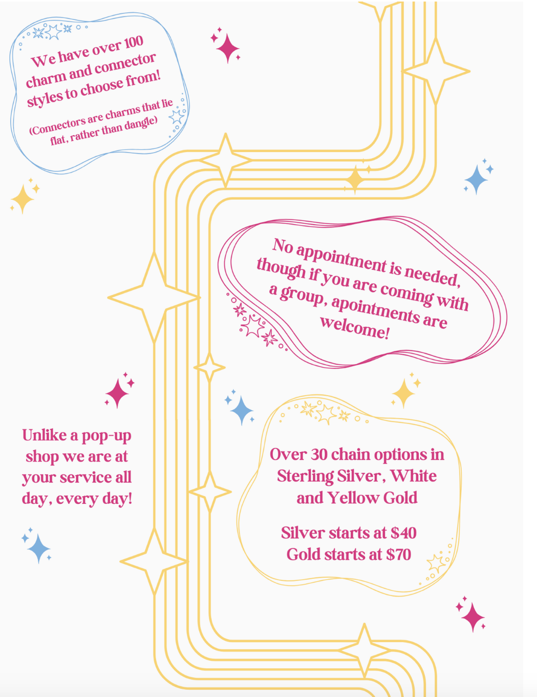 During my time as a jewelry salesperson at Angel Haven Specialty Jewelers, they were in need of someone to do design work, and I was eager to help. I helped them create consistent branding with their permanent jewelry collection and update old signage according to the client's vision. Graphics were used both digitally and in print.